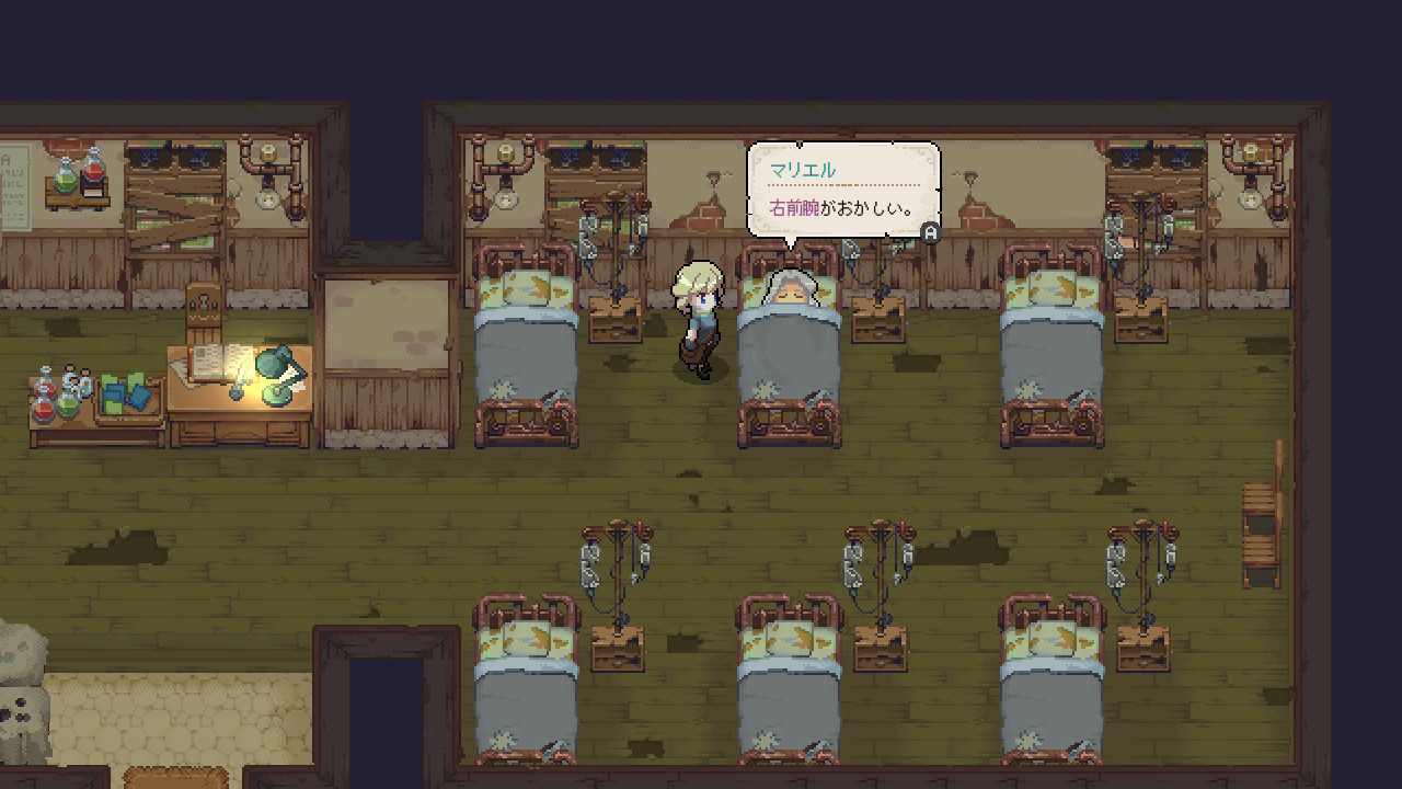 もともとムーンベリーの医療を担うために主人公は派遣されました。そのため自宅の隣には診療所が構えているし、村人が病気になると朝一番にはサイレンが鳴ります。下の画像のように、サイレン後に診療所を覗くといつの間にか村人がベッドで主人公による治療を待っています。
